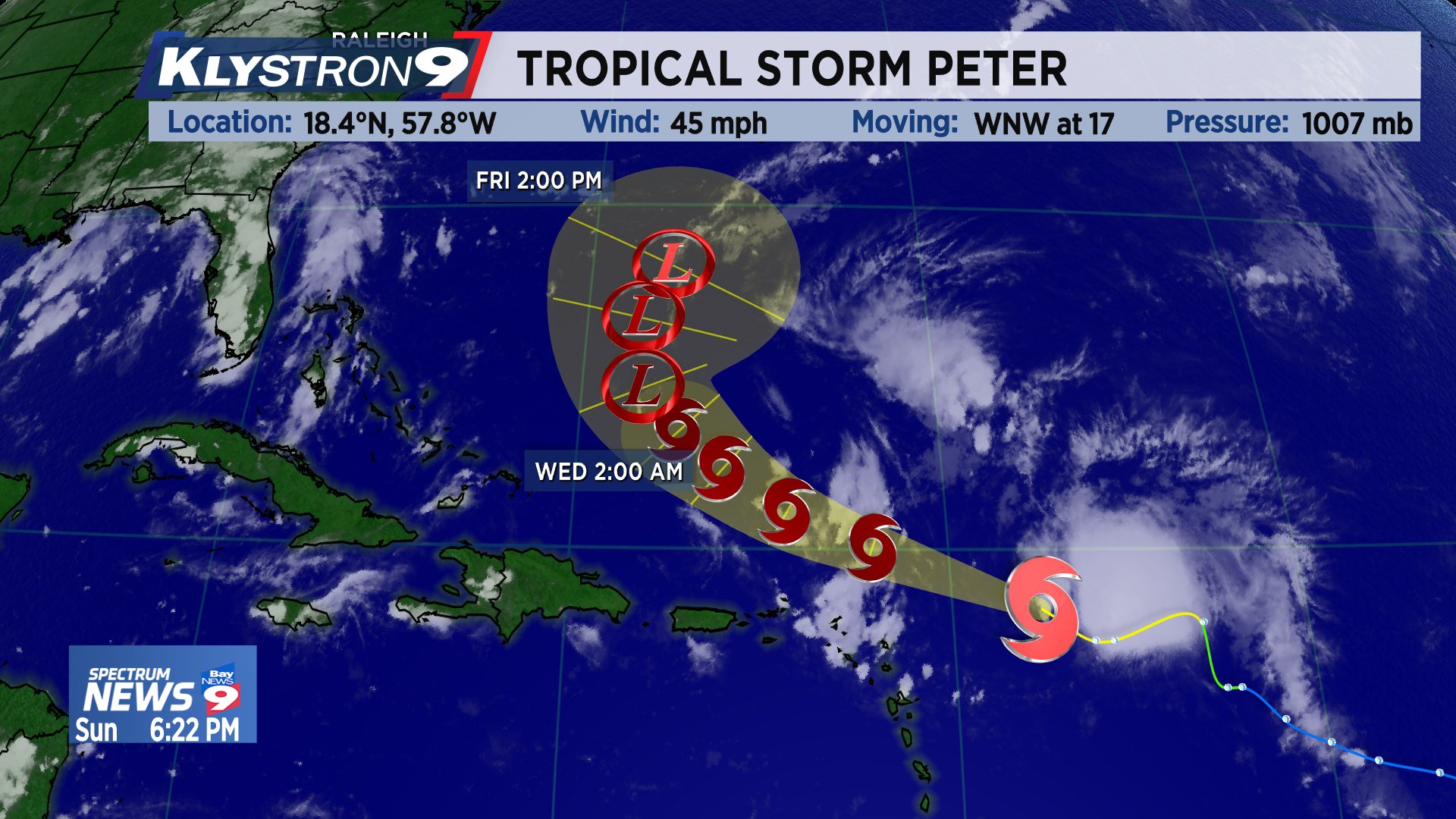 The first forecast below is for Tropical. Sunday Peter was moving west-northwest at about 14 mph. Track Tropical Storm Peter 2021.
